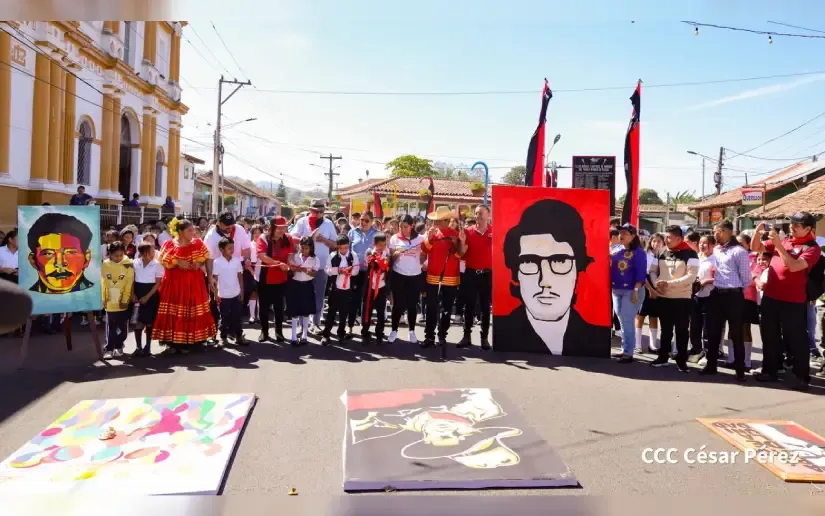 Con un hermoso tapiz de colores y flores ubicados en la calle Real de Monimbó, estudiantes de las Escuelas de Arte de Masaya saludaron el 48 aniversario de la Gesta Heroica de Los Sabogales.
