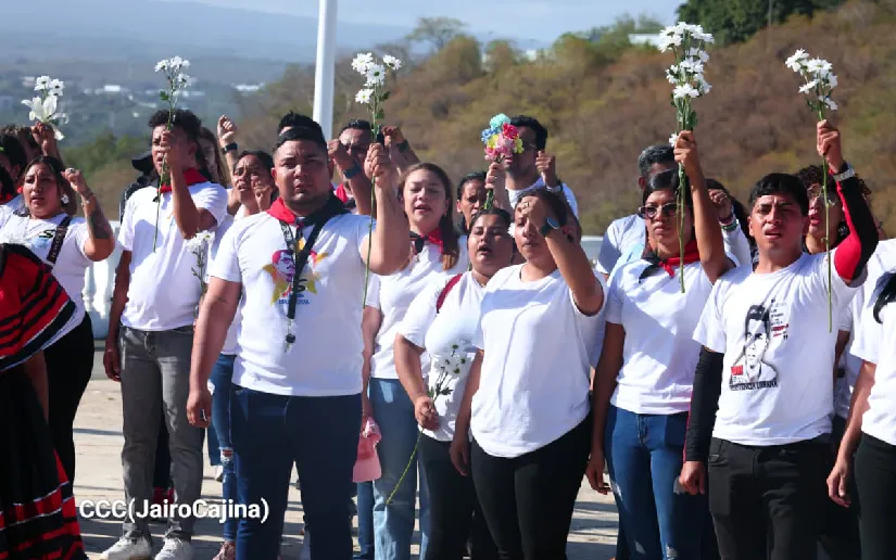 La Juventud Sandinista 19 de Julio (JS19J) depositó este sábado 21 de febrero una ofrenda floral en el monumento al General de Hombres y Mujeres Libres.