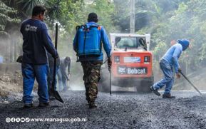 La alcaldesa de Managua, compañera Reyna Rueda, visitó la comarca San Antonio Sur, ubicada en el distrito V, donde se realiza el proyecto de mejoramiento vial que contempla la pavimentación de 24 cuadras.