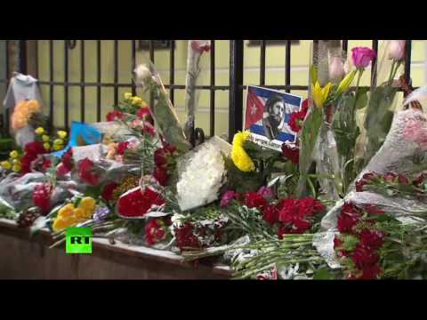 Los moscovitas depositan flores cerca de la Embajada de Cuba en Moscú en memoria de Fidel Castro