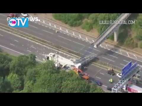 Una pasarela peatonal se desploma sobre un camión en la autopista más frecuentada del Reino Unido