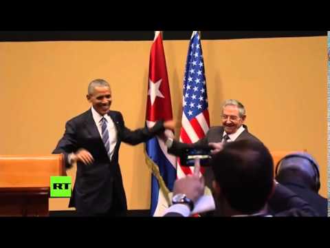 Un inusual apretón de manos pone fin a la reunión entre Castro y Obama