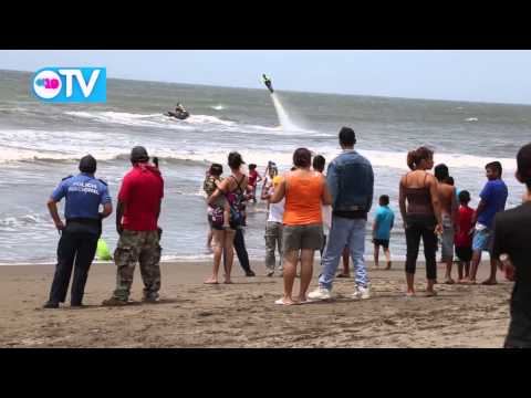 Familias disfrutan del espectáculo de Flyboarding en Boquita
