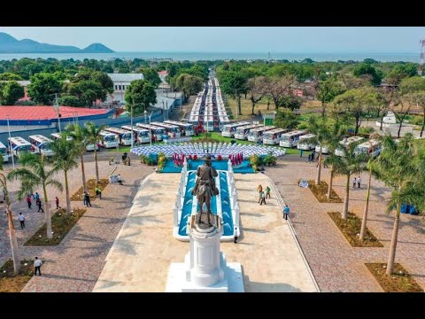 Presidente Daniel Ortega y Compañera Rosario Murillo entregan buses rusos a transportistas