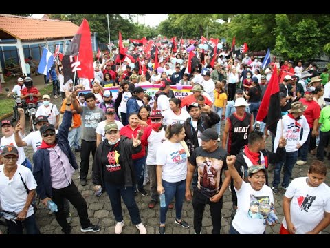 Militancia Sandinista camina en Fuerza de Victorias celebrando el 43/19