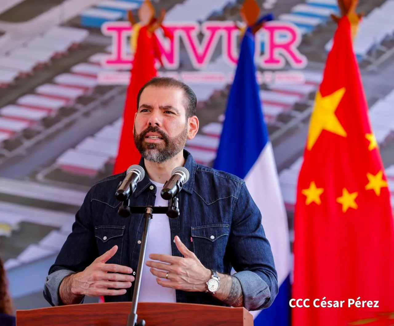 El acto estuvo presidido por el compañero Laureano Ortega Murillo, Asesor Presidencial para la Promoción e Inversiones, Comercio y Cooperación Internacional; el embajador de la República Popular China, señor Qu Yuhui, el titular del Ministerio de Transporte e Infraestructura (MTI), Oscar Mojica; la compañera Gabriela Palacios, codirectora del Instituto de la Vivienda Urbana y Rural (INVUR) y la alcaldesa de Managua, Reyna Rueda.