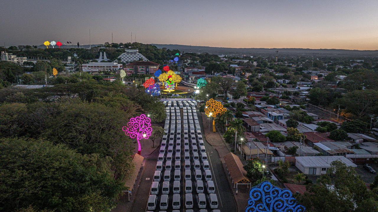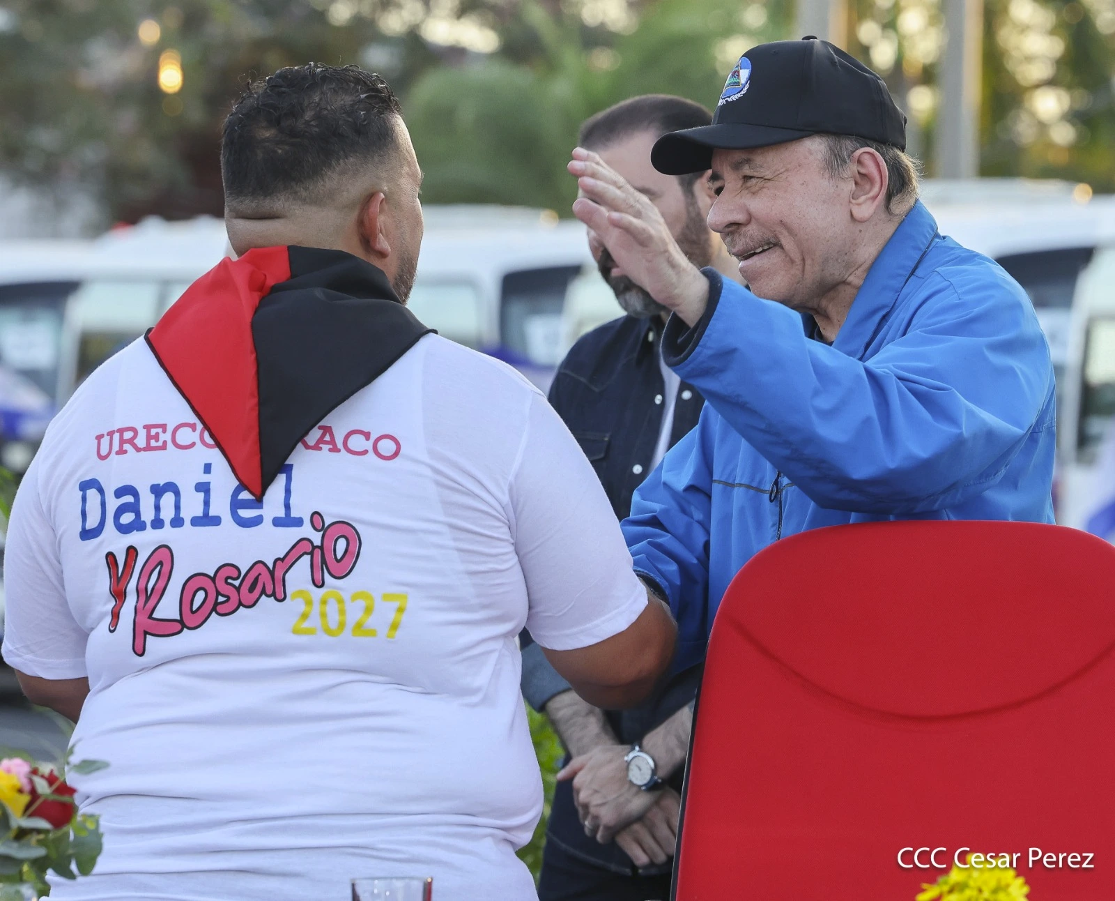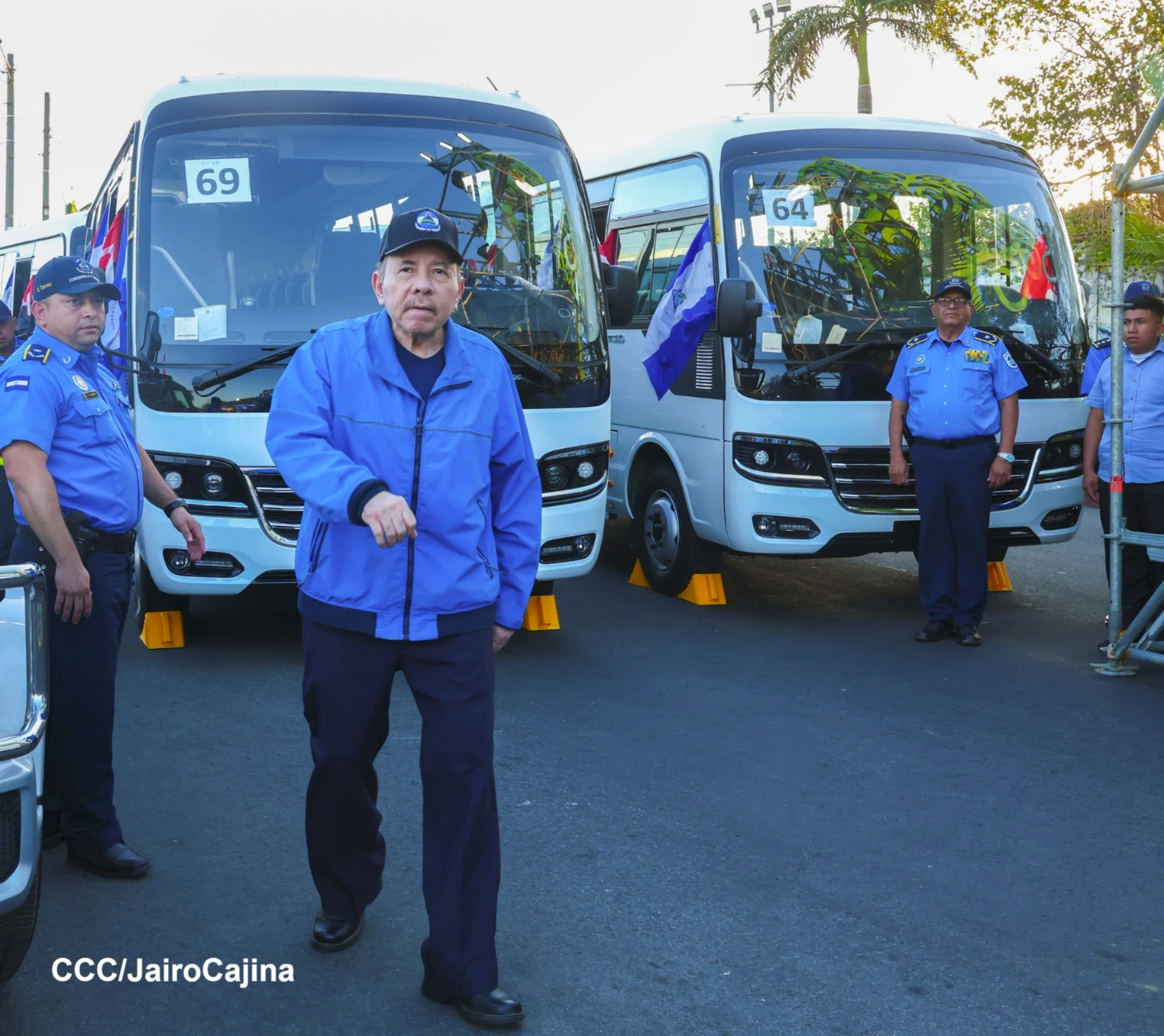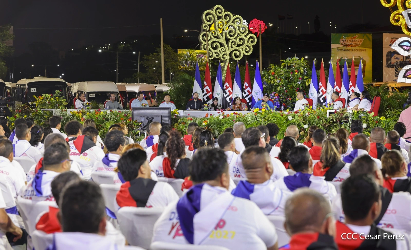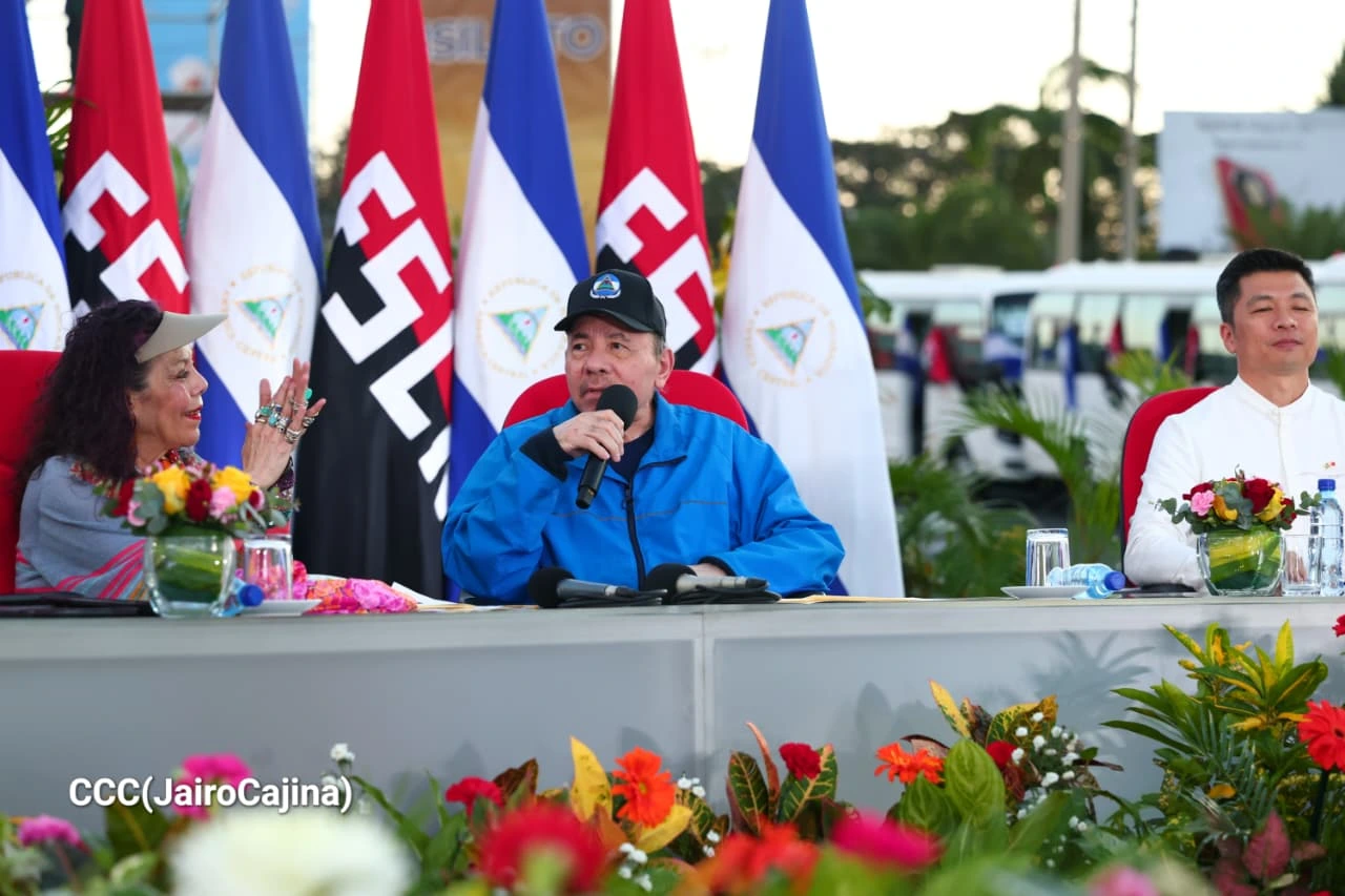 La tarde de este lunes 16 de febrero, los Copresidentes de Nicaragua, el Comandante Daniel Ortega y la Compañera Rosario Murillo, entregan 180 unidades de autobuses y microbuses provenientes de la República Popular China, a transportistas de las cooperativas de Managua y de otros municipios.