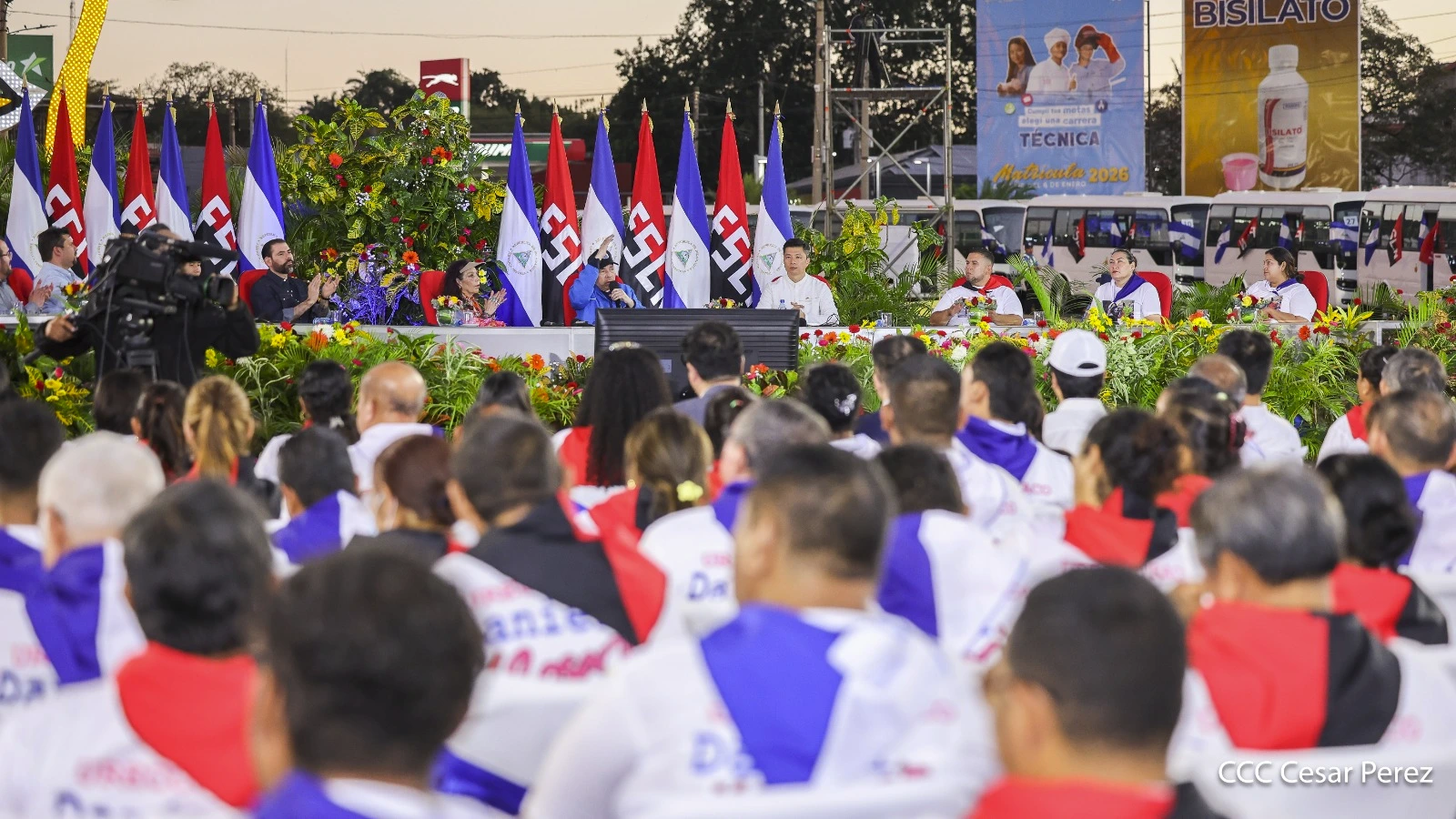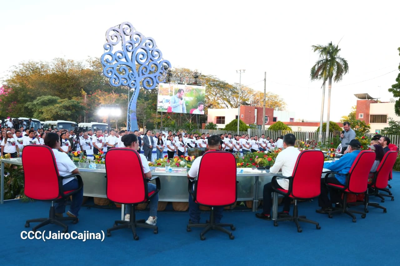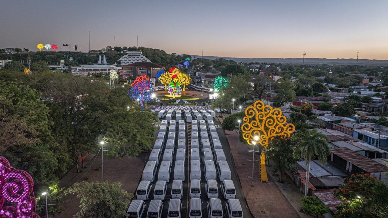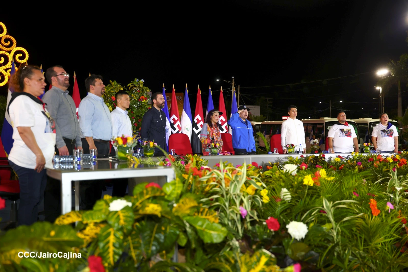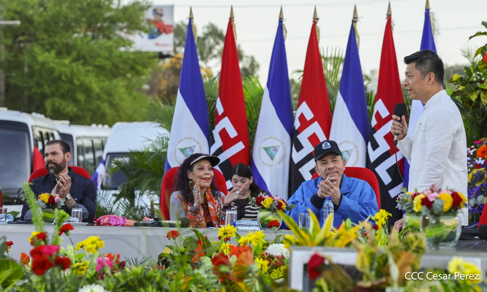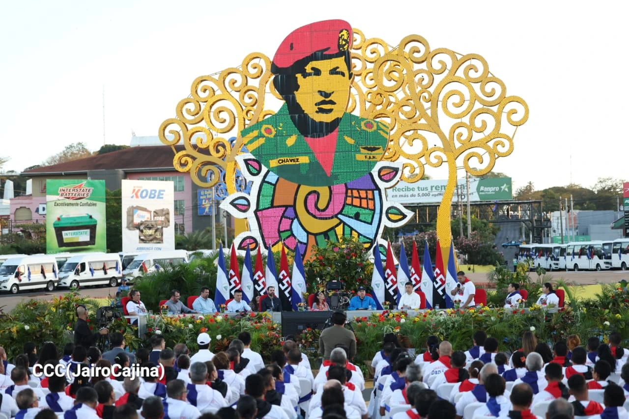 La tarde de este lunes 16 de febrero, los Copresidentes de Nicaragua, el Comandante Daniel Ortega y la Compañera Rosario Murillo, entregan 180 unidades de autobuses y microbuses provenientes de la República Popular China, a transportistas de las cooperativas de Managua y de otros municipios.