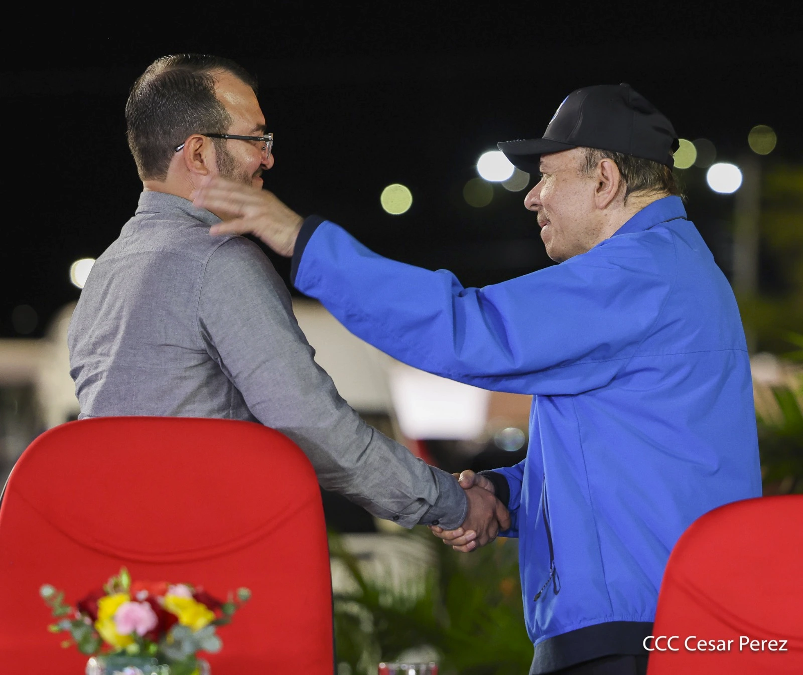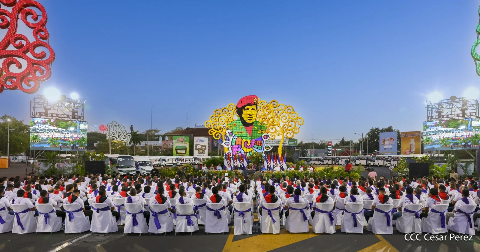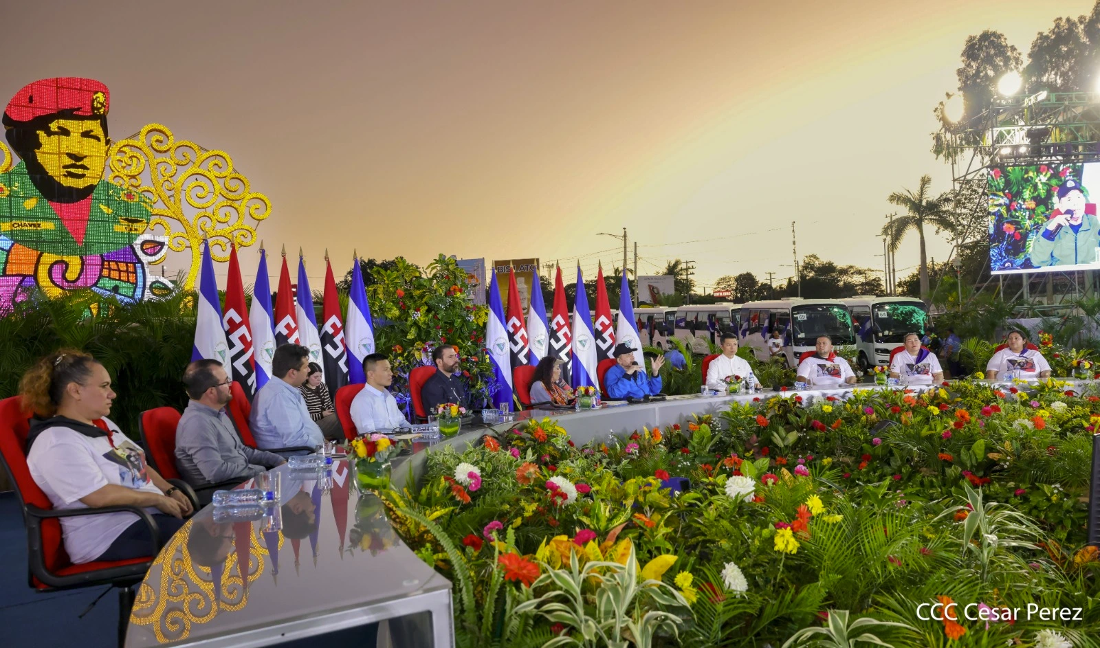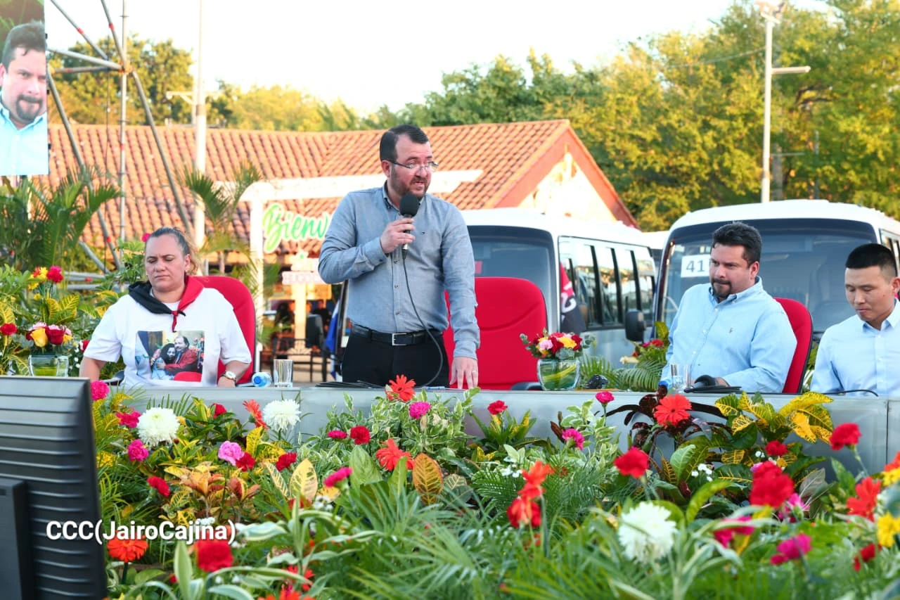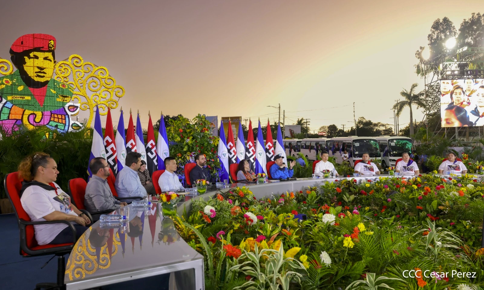 La tarde de este lunes 16 de febrero, los Copresidentes de Nicaragua, el Comandante Daniel Ortega y la Compañera Rosario Murillo, entregan 180 unidades de autobuses y microbuses provenientes de la República Popular China, a transportistas de las cooperativas de Managua y de otros municipios.