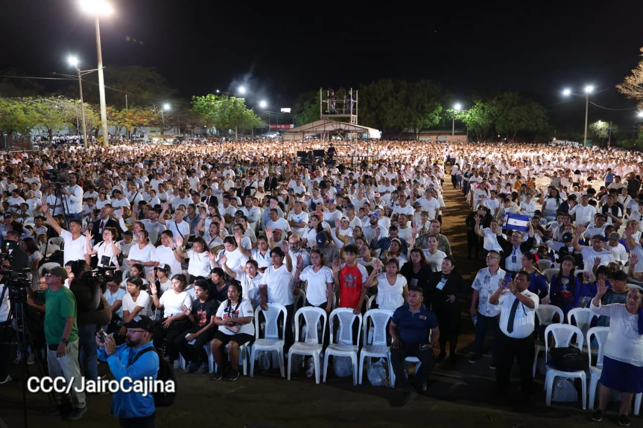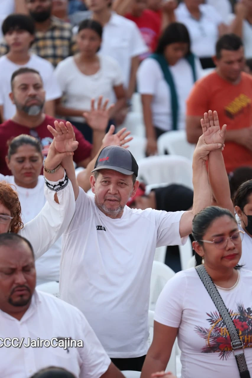 En un ambiente de fe, unidad y esperanza, familias se congregaron en el Parque La Biblia para participar en un culto y jornada de oración en celebración del Día de la Paz, guiados por la pastora Doris Myrna Ávila Talavera, hija del Siervo de Dios, Yiye Ávila, reafirmando el compromiso con la tranquilidad, armonía y desarrollo de Nicaragua.